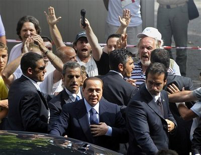 事實(shí)上,早在6月2日出席在羅馬舉行的意大利共和國(guó)成立日紀(jì)念活動(dòng)時(shí),貝盧斯科尼就遭到了一陣起哄的口哨聲。自那以后,只要是出現(xiàn)在公開(kāi)場(chǎng)所,貝盧斯科尼總會(huì)聽(tīng)到民眾的起哄。