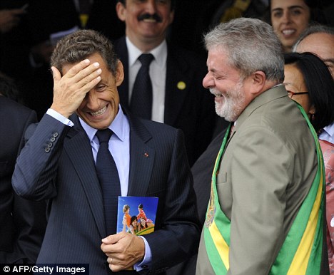 法國總統(tǒng)薩科齊6日至7日對巴西進行國事訪問,并應邀出席了巴西獨立節(jié)的慶祝及閱兵活動。閱兵活動中,薩科齊偷接電話被媒體逮了個正著。試圖用宣傳單擋住自己在打電話的舉動,可謂是“欲蓋彌彰”。