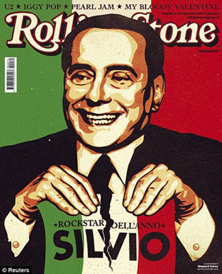 因生活方式及作風(fēng)極像一名搖滾巨星,意大利總理貝盧斯科尼日前被世界知名搖滾樂雜志《滾石》評(píng)為2009“年度搖滾明星”,并且成為該雜志的封面人物。