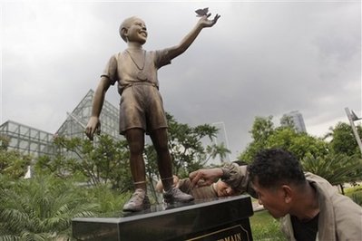 銅像被豎立在雅加達的居民區(qū),童年時的奧巴馬曾在這里玩耍。