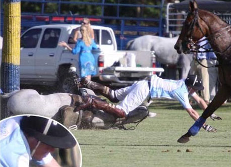 雖然說是慈善賽,但身為馬球選手,還擁有馬球隊的哈里王子,當(dāng)天打得非常認(rèn)真,也因為如此,當(dāng)他試圖搶球時,沒有注意到彎度過大,馬身極度傾斜,最后,馬匹打滑摔倒,他也就因此從馬背上落下。