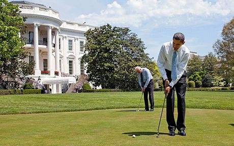 據(jù)美國媒體19日報(bào)道,在因歐洲航空管制取消了原定的波蘭之行后,美國總統(tǒng)奧巴馬選擇在高爾夫球場度過他難得的休息日,他抽空好好的過了一把高爾夫球癮。美國媒體更是煞費(fèi)苦心的歷數(shù)了奧巴馬在上任后打高爾夫球的次數(shù)。