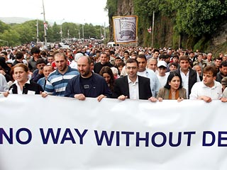 5月26日格魯吉亞反對派在首都第比利斯舉行大規(guī)模游行示威活動,從全國各地趕來的約6.5萬名支持者參加。為了迫使總統(tǒng)薩卡什維利下臺,反對派宣布準備采取激進措施,封鎖鐵路、國道和機場。反對派“為了統(tǒng)一的格魯吉亞”運動領袖別謝利婭在議會大廈前的集會上宣布:“今天我們將封鎖鐵道,從今天起我們將開始最激進的行動!狈磳ε杀J攸h領袖濟濟古里宣布:“我們計劃首先和平封鎖鐵路,然后是機場。我們的行動將是和平的,但極其激進。”反對派“格魯吉亞道路”黨領袖祖拉比什維利宣布:“我們將用汽車封鎖中央(公路)干線,然后步行去封鎖鐵路!