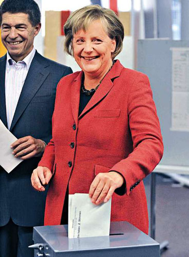 默克爾領(lǐng)軍的基民黨/基社黨(CDU/CSU),隸屬中間偏右的保守陣營,與主張自由競爭市場經(jīng)濟體制和減稅的右派自民黨政見相近,兩黨組成聯(lián)合政府,德國的政治生態(tài)從此向右轉(zhuǎn),對投資環(huán)境和工商團體有利,外交部長一職,很可能由自民黨的黨魁威斯特威勒(Guido Westerwelle)出任。