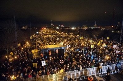 較早前的示威原本和平進行,丹麥電視臺估計示威人數(shù)介乎3萬至10萬人,警方則估計示威者超過5萬人,在氣候會議會場外的游行人龍長達6公里。在游行隊伍出發(fā)前,當局表示憂慮會有極端分子策動暴力行為,而主辦單位亦呼吁示威者保持冷靜。