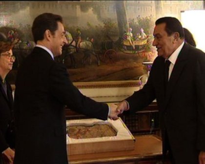 中新網(wǎng)12月15日電 據(jù)法新社報(bào)道,14日,埃及總統(tǒng)穆巴拉克到訪法國(guó),受到法國(guó)總統(tǒng)薩科齊的接見(jiàn)并收到一件特殊禮物——埃及長(zhǎng)期以來(lái)要求法國(guó)歸還的埃及墓穴文物。