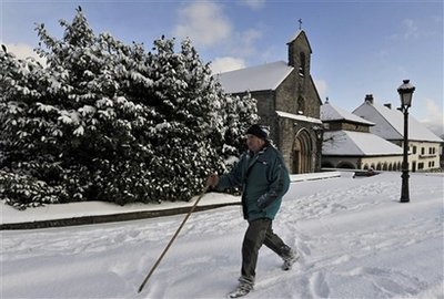 比利時中部亦下大雪,首都布魯塞爾的大雪令全市出現(xiàn)嚴重交通擠塞,氣象部門預(yù)計未來兩天氣溫會下降至零度以下,圣誕前最后一個周末會持續(xù)下大雪。