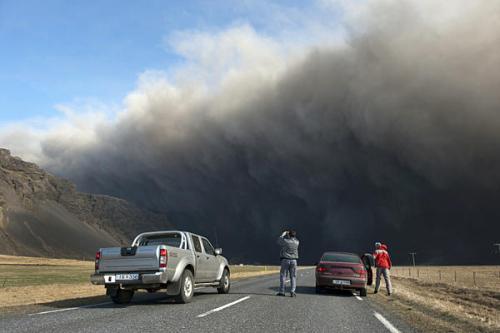 正在冰島觀(guān)察火山爆發(fā)的荷蘭氣象學(xué)家埃德溫•詹尼表示:“現(xiàn)在,我們距離火山口大約有25公里遠(yuǎn),正在觀(guān)察一個(gè)灑滿(mǎn)陽(yáng)光的冰蓋。它的上空有一片高達(dá)4公里至5公里的火山灰云柱,這簡(jiǎn)直是真正的地獄……”