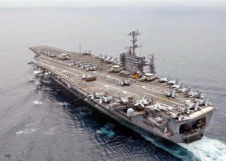韓聯(lián)社15日稱,參加演習的是美國“華盛頓”號航母,它曾于2008年到韓國釜山參加國際觀艦式。這次“華盛頓”號的到來是美國核動力航母首次進入朝鮮半島西海。(注:韓朝所稱的半島“西!奔粗袊Q的黃海,“東!奔慈毡竞)