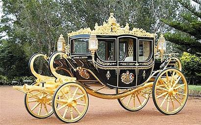 據(jù)報(bào)道,這輛奢華無比的“黃金婚車”名叫“不列顛尼婭(Brittania)”,由澳洲工匠弗萊.克林頓耗時(shí)6年打造?肆诸D此前為英國(guó)女王伊麗莎白二世制造過多輛專屬馬車。這輛奢華的“黃金婚車”全車重達(dá)2.5噸,高3米,車身上裝飾有總計(jì)24顆鉆石、130顆藍(lán)寶石和超過400片金葉。車身上一百多塊木材分別取自倫敦塔、19世紀(jì)英國(guó)海軍名將納爾遜的“勝利號(hào)”戰(zhàn)艦以及16世紀(jì)亨利八世國(guó)王的“瑪麗.羅斯號(hào)”戰(zhàn)艦等重要王室建筑和文物,將是迄今為止英國(guó)最具有歷史意義的車輛之一。