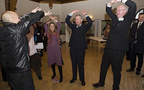 查爾斯王儲(chǔ)似乎對(duì)氣功很感興趣,氣功教練蓋伊·何教了他兩個(gè)簡(jiǎn)單動(dòng)作:先將右手舉到頭頂,手掌向上舉起,左手也做同樣的動(dòng)作,最后雙手重復(fù)這個(gè)動(dòng)作。蓋伊告訴他,想象自己手掌中正有一個(gè)能量球,但查爾斯的“能量球”掉下來(lái)兩次!八哪芰亢芎,他的精神力也很集中,但他需要一點(diǎn)兒技術(shù)!辈闋査垢嬖V另一位練習(xí)者說(shuō):“幾年前我的胳膊曾有兩處骨折,這讓我做起動(dòng)作來(lái)很難!