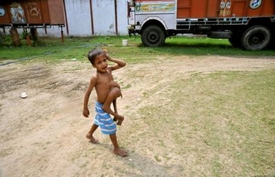 中新網(wǎng)3月11日電 據(jù)外電報道,印度一名出生即長有4支胳膊與4條腿的7歲男孩庫馬爾,被當?shù)睾芏嘤《冉掏疆斪诮膛枷癯绨。而他的父親則表示很不舒服,他想要的就是給庫馬爾做一次手術,讓他恢復正常人身。