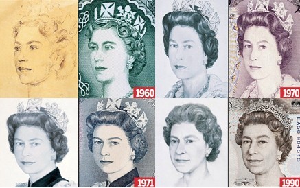 據(jù)報道,1960年5月17日,英國女王伊麗莎白二世的頭像首次出現(xiàn)在對外流通的紙幣上。女王頭像分別在1960年、1963年、1970年、1971年以及1990年共5次經(jīng)過重新描畫,作了改動。此外,有的頭像是畫于同一時期,但用在不同面值的紙幣上。