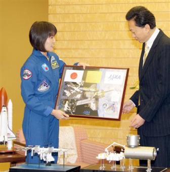 中新網(wǎng)5月21日電 據(jù)日本新聞網(wǎng)報(bào)道,從宇宙空間站返回不久的39歲日本美女航天員山崎直子20日下午到首相官邸,向日本首相鳩山由紀(jì)夫作匯報(bào)。鳩山說(shuō)了一句話,讓山崎差一點(diǎn)昏倒。鳩山問(wèn)山崎“日本為什么不開發(fā)載人宇宙飛船”,而報(bào)道指出這句話應(yīng)該是山崎反問(wèn)鳩山才對(duì)。