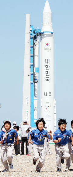 當(dāng)天下午2時在羅老太空中心的運載火箭組裝廠舉行了竣工儀式,有1100多人前來出席。韓國總統(tǒng)李明博致詞說:“今后10年內(nèi),韓國要靠自己力量開啟‘太空時代’,躋身世界7大航天強國。”