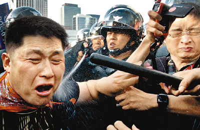在30日傍晚所舉行的“530反政府”萬(wàn)人示威游行持續(xù)至深夜,憤怒民眾齊聚首爾廣場(chǎng),不愿離去,甚至爆發(fā)民眾用鐵鏟攻擊警用巴士,場(chǎng)面一度失控。