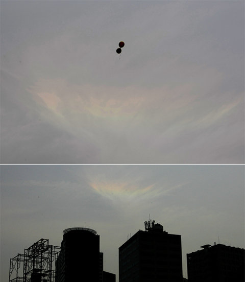 中新網(wǎng)6月2日電 據(jù)韓國《中央日報》報道,韓國前總統(tǒng)盧武鉉方面1日向外界發(fā)布了德壽宮上空出現(xiàn)彩虹的照片,這些照片攝于上個月29日在首爾廣場為盧武鉉進行路祭的時候。