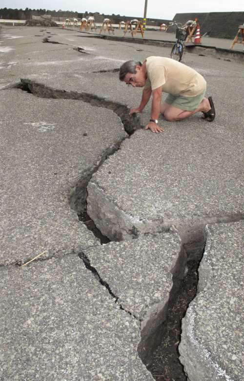 在燒津港的碼頭上,地震后出現(xiàn)了一條300米長的裂痕。燒津港某漁業(yè)合作社的官員說:“這次地震和海嘯預(yù)警實在令人害怕。今天的事讓我們?yōu)檎嬲拇鬄?zāi)難進(jìn)行演習(xí)。”