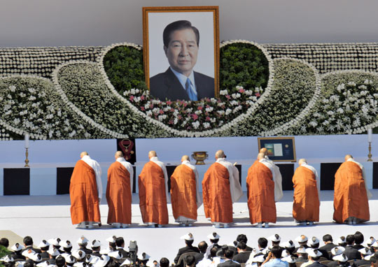 據(jù)韓國《中央日報》報道,以韓國總統(tǒng)李明博和前總統(tǒng)金泳三為首的主要人士以及駐韓使節(jié)、遺屬等參加遺體告別儀式,預計規(guī)模將是史上最大。政府現(xiàn)在邀請了2萬4000人參加遺體告別儀式。