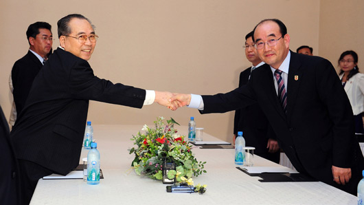 韓朝紅十字會(huì)26日下午在朝鮮金剛山酒店舉行全體會(huì)議,就安排離散家屬會(huì)面問(wèn)題交換了立場(chǎng)。