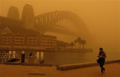 上個月是澳洲歷來最炎熱的一個月份,加上歷時長達10年的旱災(zāi)累積了大量沙塵,結(jié)果在強風(fēng)吹襲下,形成了這股自1942年以來侵襲悉尼的最嚴(yán)重沙塵暴。