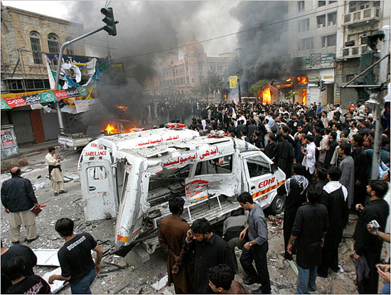 爆炸引起了當?shù)厝说膹娏覒嵟,?shù)千人聚集在卡拉奇市中心為一些在爆炸中喪生的人舉行葬禮。還有一些人向市場和商店內放火,當局不得不向附近的海德拉巴市消防部門求援。
