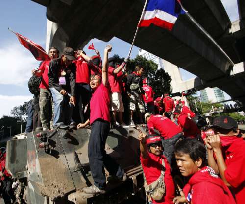 泰國(guó)最高法院最近裁定充公他信逾半資產(chǎn),惹來他信的支持者強(qiáng)烈反對(duì)。反獨(dú)裁民主聯(lián)盟(UDD,俗稱“紅衫軍”)計(jì)劃動(dòng)員百萬民眾,星期五開始在曼谷周邊地區(qū)集合,之后再在曼谷市內(nèi)多處,包括皇家田廣場(chǎng)和國(guó)會(huì)大樓前,舉行百萬人反政府集會(huì)和示威。紅衫軍領(lǐng)袖聲言集會(huì)會(huì)以和平方式進(jìn)行,目標(biāo)是三日內(nèi)迫使總理阿披實(shí)解散國(guó)會(huì),重新大選。他們更表示,剛頒布的國(guó)內(nèi)安全法不會(huì)阻止他們的活動(dòng)。