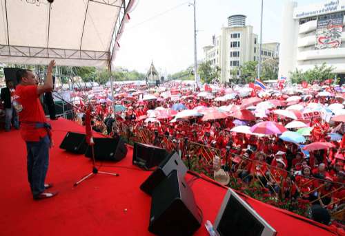 從十四日上午十時開始,素蓬、乍都蓬等紅衫軍領(lǐng)導人輪番登場發(fā)表演講,不時贏得臺下紅衫軍的陣陣掌聲與喝彩。