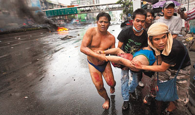 泰國(guó)政府表示,會(huì)繼續(xù)軍事鎮(zhèn)壓紅衫軍,宣布今明兩天為假期,讓民眾留在家中。曼谷市長(zhǎng)素坤攀說(shuō),考慮到學(xué)生和教師安全,曼谷學(xué)校新學(xué)期開學(xué)日從今日推遲至下周一。一名救護(hù)員前天救人時(shí)中槍死亡后,泰國(guó)緊急醫(yī)療學(xué)院禁止醫(yī)護(hù)人員進(jìn)入高危的“紅區(qū)”,朱拉隆功醫(yī)院今日亦會(huì)停止服務(wù),暫停所有手術(shù)。曼谷零售和酒店業(yè)早已陷入癱瘓,全市1500萬(wàn)市民生活大受影響!