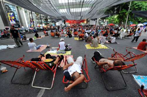 中新網(wǎng)5月18日電 綜合外電報(bào)道,泰國(guó)反政府紅衫軍一名領(lǐng)導(dǎo)人17日向總理阿披實(shí)的一名高級(jí)助手打電話(huà)建議雙方“休戰(zhàn)”。