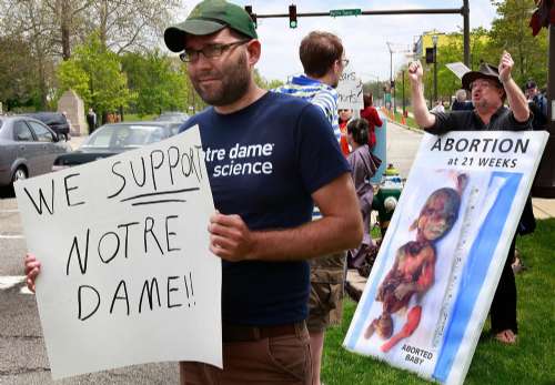 據(jù)報(bào)道,奧巴馬支持墮胎和胚胎干細(xì)胞研究立場,觸發(fā)天主教保守派人士和師生不滿。一些活動人士早已誓言干擾奧巴馬在該地的演講。