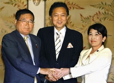 三黨正式達(dá)成協(xié)議后,鳩山邀請(qǐng)社民黨黨首福島瑞穗、國(guó)民新黨代表龜井靜香入閣。除已經(jīng)內(nèi)定的主要內(nèi)閣成員外,內(nèi)閣其他成員的人選也將于本周內(nèi)相繼確定。