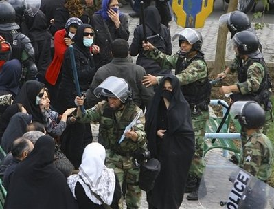 反對(duì)派領(lǐng)導(dǎo)人穆薩維與卡魯比敦促支持者們走上街頭,抗議總統(tǒng)艾哈邁迪內(nèi)賈德的政府。目擊者稱:“警方與幾百名示威人群發(fā)生沖突。示威者高喊‘打倒獨(dú)裁者!’。警方用警棍驅(qū)散示威人群!绷硪幻繐粽叻Q,警方向人群發(fā)射了催淚彈。