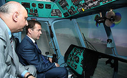 Tranzas公司方面向梅德韋杰夫展示了為專業(yè)飛行員制造的高級訓(xùn)練臺。它能夠模擬在俄羅斯最受歡迎的米格-8型直升機的飛行。公司學(xué)習(xí)部門的主任葉甫蓋尼·阿巴庫莫夫和梅德韋杰夫一起坐在米格-8直升機的方向盤前,在圣彼得堡阿德列爾機場最不利的條件下進(jìn)行了一次駕駛。