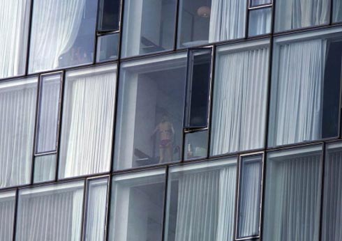 在美國紐約市新近開放的High Line公園內(nèi),矗立著Standard Hotel酒店, 該酒店房間面朝公園的一面被建造為落地玻璃窗,方便房客俯瞰公園景色,當(dāng)然,酒店外的人也能透過玻璃窗清楚地看到房間里的景象。然而,許多房客不知出于什么原因,經(jīng)常沒有拉上窗簾,就進(jìn)行各種私人活動,將一些裸露、猥褻、甚至粗野的行為都完整地暴露在公眾的視線當(dāng)中,讓公園游客們大飽眼福。