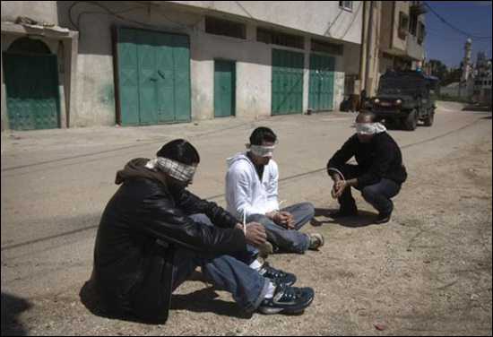 這兩名士兵都隸屬于獅崽步兵突擊旅。他們稱,自己曾目擊了3月26日,數(shù)百名以軍士兵在一個名為哈里斯的小村子中的搜索行動。士兵甲說,大約150名巴勒斯坦人,最小的只有14歲,被以軍士兵捆綁起來,戴上眼罩,然后關(guān)押在村子的學校中,從上午三點一直到下午三點。他說,以軍士兵這樣做是為了防止村子中的年輕人向附近的公路扔石頭。顯然,被拘押的大多數(shù)人都沒有反抗行為,以軍士兵只是為了收集更多情報。