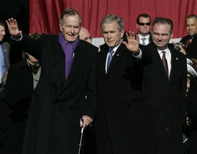 布什總統(tǒng)站在“H.W.布什號”上,對著記者和海軍人員發(fā)表演講時(shí)表示,登上這艘“令人敬畏”的航母,向一位 “令人敬畏”的前總統(tǒng)致以最高的敬意,他感到非常激動。布什(62歲)說,為了寫好這篇演講稿,他找出父親的舊信件研究一番,發(fā)現(xiàn)40年代末的一封信中提到長子喬治(現(xiàn)任總統(tǒng)布什)。