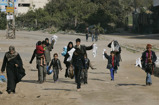 還是從4日說起吧,那天清晨,在位于加沙城西部的南里馬勒居民區(qū),居民們聽說了以色列地面部隊攻占前猶太定居點尼察里姆的消息。這個地方在南里馬勒以南,相距不過3公里。許多人很快便決定離家避禍,轉(zhuǎn)移到遠離坦克炮彈的地方去。