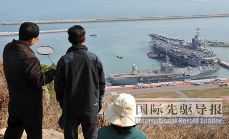 其中滿載排水量達10.2萬噸的“斯坦尼斯”號航母從加利福尼亞州圣迭戈海軍基地出發(fā),2月18日攜5000名艦員及其他4艘護艦艇抵達香港休整。2月27日上午,“斯坦尼斯”號航母編隊?咳毡咀羰辣\姼。演習期間,為防止朝鮮試射“大浦洞”2型遠程彈道導彈,美軍出動的“宙斯盾”級導彈驅(qū)逐艦達到7艘,其規(guī)模為歷次演習所罕見。
