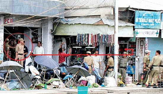 印度警方聲稱,7月23日在印度東北部比鄰緬甸的曼尼普爾邦一個(gè)市場(chǎng)內(nèi)的一次追捕行動(dòng)中,一名名叫桑吉特的27歲的男子朝警察開槍,隨后警方將其擊斃。當(dāng)?shù)卣J(rèn)為桑吉特是一分裂組織成員。但是據(jù)一名匿名記者披露的照片顯示,桑吉特看起來似乎沒有攜帶武器,而數(shù)名警察趁其不注意將他圍住。警察對(duì)桑吉特進(jìn)行了搜身,而后挾持其到了一家藥店。在藥店門口一名警察掏出手槍將其擊斃。