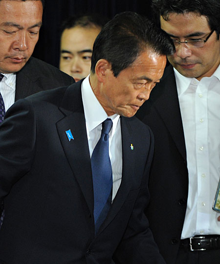 中新網(wǎng)8月30日電 綜合日本共同社消息,日本首相、自民黨總裁麻生太郎30日晚在接受電視采訪時(shí)就眾院選舉結(jié)果表示“未能消除(選民)對(duì)自民黨的不滿”,事實(shí)上承認(rèn)了敗北。他并表示將辭去自民黨總裁職務(wù)。