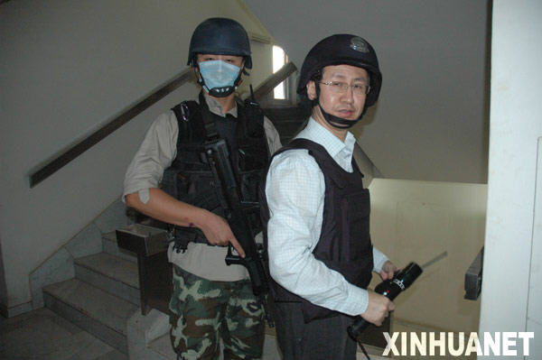 記者和中國使館人員以及武警雪豹突擊隊(duì)警衛(wèi)小組的戰(zhàn)士紛紛在煙塵中沖出房間。中國駐伊拉克大使常毅立刻把大家召集在屋頂最為堅(jiān)固的門廳中,指揮大家采取自救措施。在曼蘇爾飯店中餐廳工作的兩名中國廚師跑到使館求救。他們受了傷,身上沾滿鮮血,大使夫人和武警戰(zhàn)士立刻取來急救包為他們包扎。