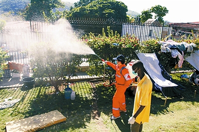 中國國際救援隊醫(yī)療分隊同時還在災區(qū)開展了衛(wèi)生宣教、衛(wèi)生防疫工作。據(jù)侯世科介紹,海地總理府附近聚集了近千名災民,震后衛(wèi)生條件極差,許多尸體沒有及時掩埋,災民缺少食物、藥品,隨時可能出現(xiàn)腸道傳染病等疾病的蔓延。中國醫(yī)護人員對300多平方米的災民聚集點進行了噴灑消毒!拔覀償y帶的消毒藥用得很快,明天我們會帶更多的藥物去現(xiàn)場。”