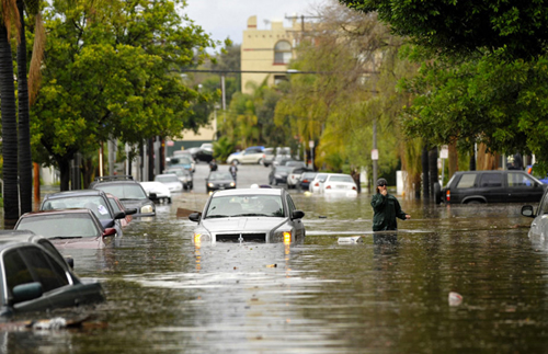 自十七日開始,美國加州南部地區(qū)普遍遭遇暴風(fēng)雨襲擊,部分地區(qū)發(fā)生山洪和泥石流。今天,暴風(fēng)雨再次肆虐洛杉磯等地,美國國家氣象局中午一度發(fā)布南加州沿海將發(fā)生龍卷風(fēng)的警報。