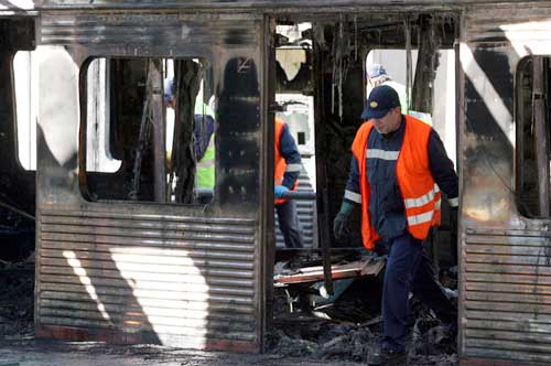 30名消防隊(duì)員最后將大火撲滅,但是其中一列車(chē)上的6節(jié)車(chē)廂被毀,另一列車(chē)上有3節(jié)車(chē)廂被毀。