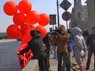 據(jù)俄羅斯新聞網(wǎng)報道,俄羅斯反對黨“團結(jié)運動”組織成員4月28日在克里姆林宮前舉行了聲勢浩大的反政府游行活動。期間,3名“團結(jié)運動”的積極分子在克里姆林宮附近的河岸邊懸掛紅色的巨型橫幅,上面印有:“梅德維杰夫,辭去普京總理職務!弊謽樱瑱M幅兩邊系有紅色的氣球,橫幅下部印有“團結(jié)運動”組織的徽標。