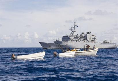 據(jù)英國媒體報(bào)道,5月4日,法國海軍將抓獲11名索馬里海盜的錄像公布于眾。法國海軍在塞舌爾島以外海域俘虜11名索馬里海盜。當(dāng)時(shí),這些海盜蔣法國軍艦誤認(rèn)為是商船。據(jù)報(bào)道,事實(shí)上,海盜們想襲擊的是參與歐盟打擊海盜行動、在當(dāng)?shù)睾S蜓策壍姆▏鴮?dǎo)彈護(hù)衛(wèi)艦“雪月號”。