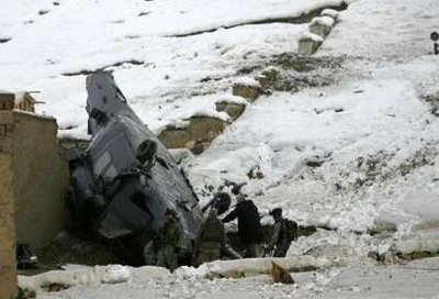 駐阿富汗美軍17日再度發(fā)生直升機(jī)墜毀事件:一架“支奴干”大型直升機(jī)在阿東部地區(qū)“硬著陸”,結(jié)果造成一名美軍喪生。同一天,阿首都喀布爾17日發(fā)生汽車炸彈爆炸事件,造成一名美軍和四名阿富汗平民被炸死。僅僅24小時(shí)前,一架美軍“黑鷹”直升機(jī)在喀布爾附近墜毀,但7名機(jī)上人員全部生還。