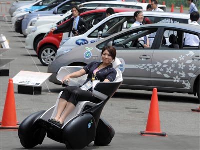 圖文:八國(guó)峰會(huì)期間日本展示的單人座車(chē)引人注目