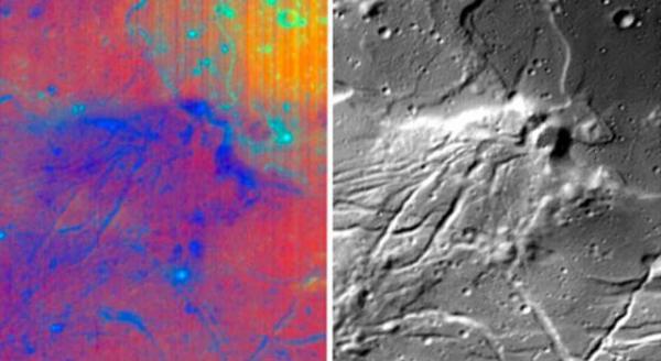 此圖是由該飛船裝配的美國(guó)宇航局月球礦物質(zhì)繪圖儀拍攝。月球礦物質(zhì)繪圖儀是"月球初航1號(hào)"首個(gè)提供月球表面高清晰度圖像的儀器,其所拍攝的這張彩色圖像不僅具備傳統(tǒng)二維圖像的長(zhǎng)和寬,還通過(guò)顏色呈現(xiàn)其空間尺度。這種彩色是由28種不同波長(zhǎng)的光線從月球上反射形成的。其中,從藍(lán)色至紅色揭示了巖石和礦物成份的變化,綠色則代表像輝石這樣含鐵豐富的礦石。黑白圖像是單個(gè)波長(zhǎng)的光線所獲得的圖像,可以重新認(rèn)識(shí)這一月球表面區(qū)域的結(jié)構(gòu)和形成。